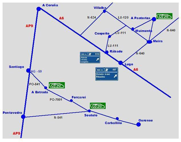 Existen varias formas de acceder a la pista desde la autovía A-6, tal y como se muestra en el plano adjunto:
